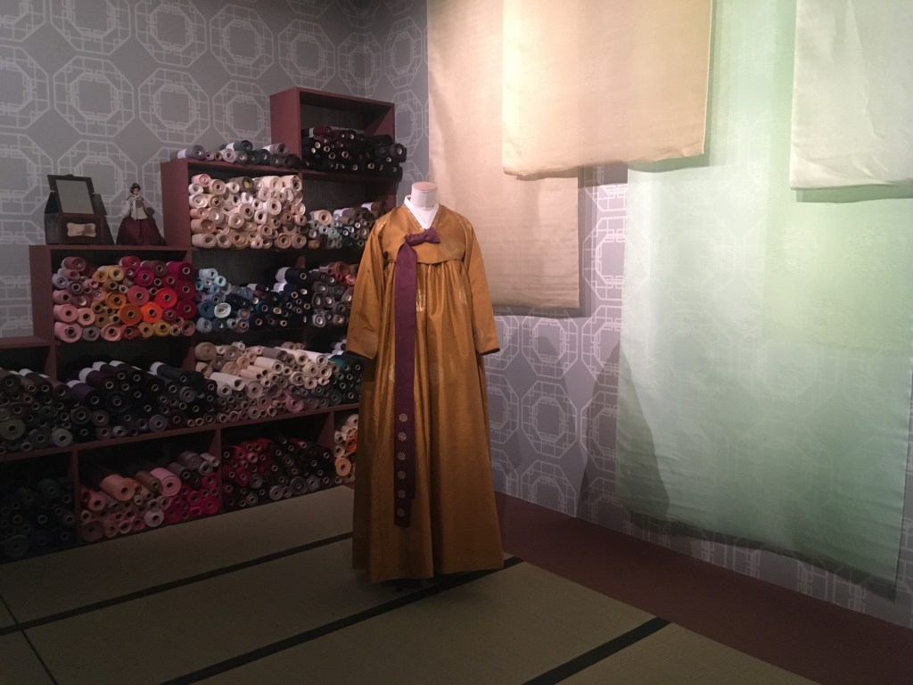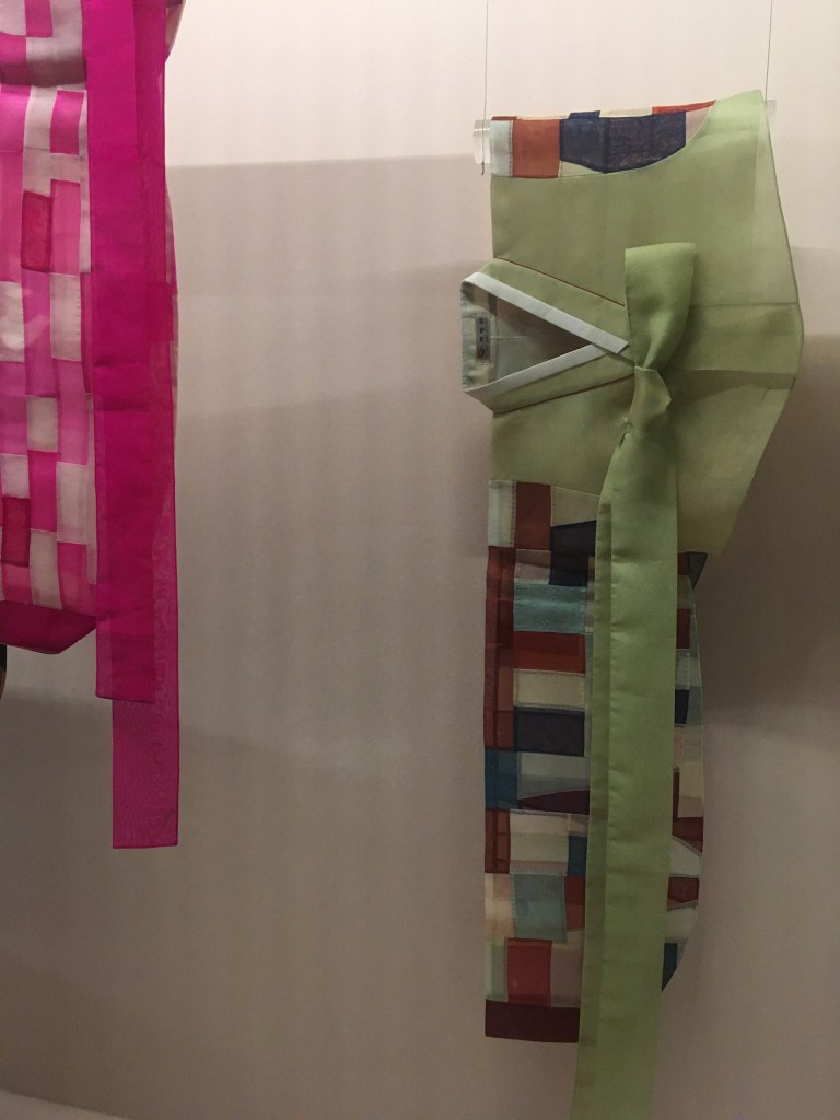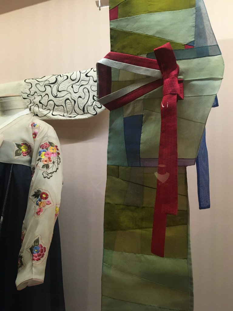 I had to go see this exhibition and I was more than happy. I discovered a new textile designer, a new way of seeing and designing Korean textile art and new knowledge on Korean costume, The Hanbok – 한복.