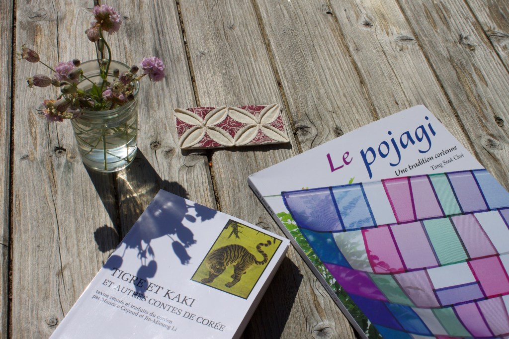 After finishing the exhibition I look at Guimet Museum souvenirs shop. I bought for myself a technical introductory book about Bojagi – 보자기 by Yang Sook Choi and a traditional storybook entitled “Tiger and persimmon and other tales of Korea “, texts collected and translated from Korean to French by Maurice Coyaud and Jin Mieung Li. In these times of quarantine, I enjoy those little gifts a lot !