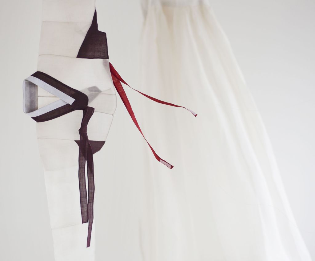 Shaped gauze Hangra – 항라, taffeta and silk organza.