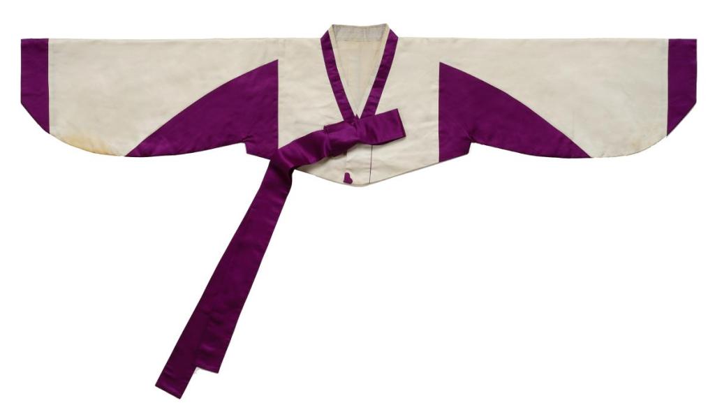 Mortuary clothe. Ramie Mosi – 모시, silk organza and Hangra gauze, gold stamped for the jacket Dangui – 당의.