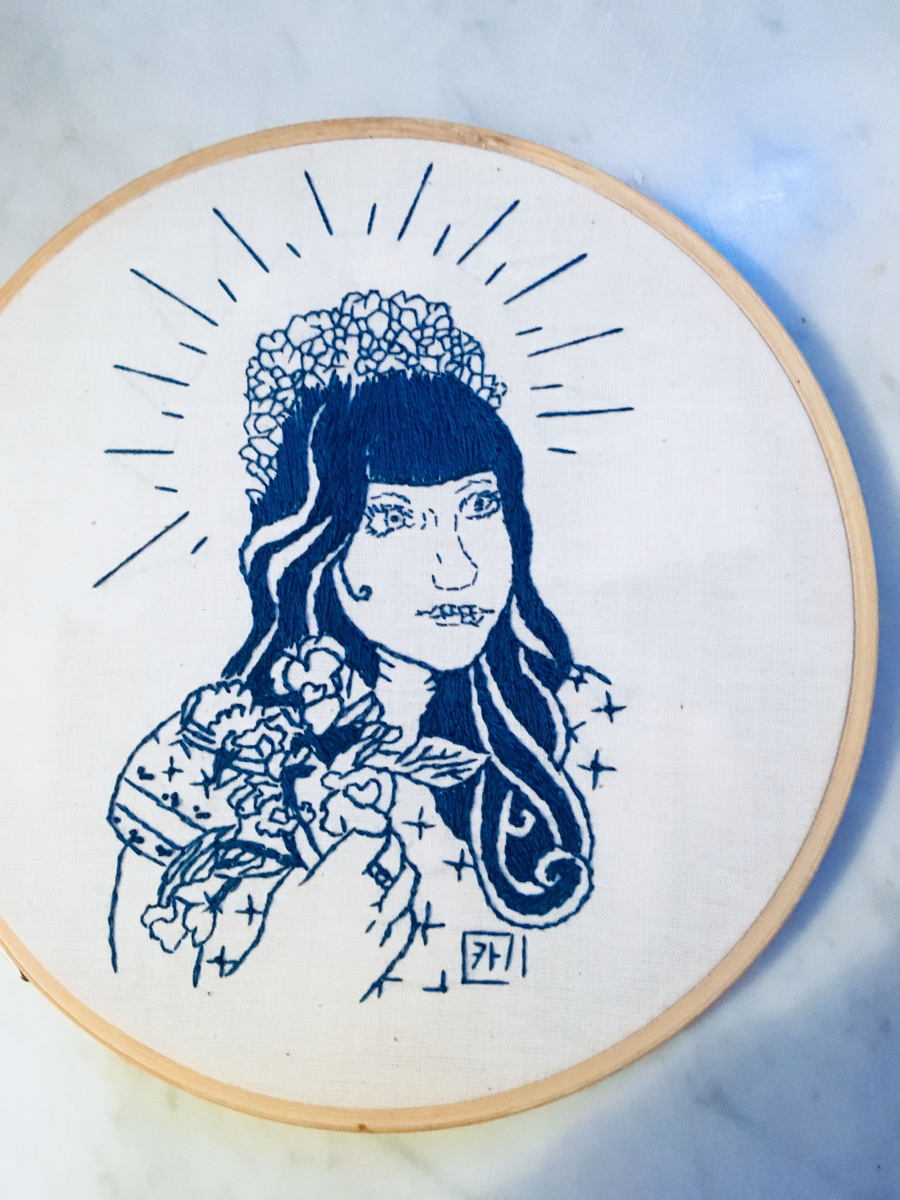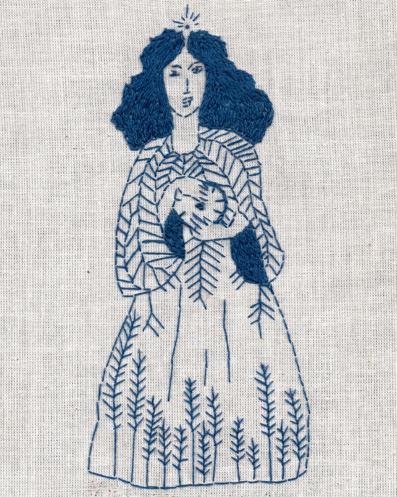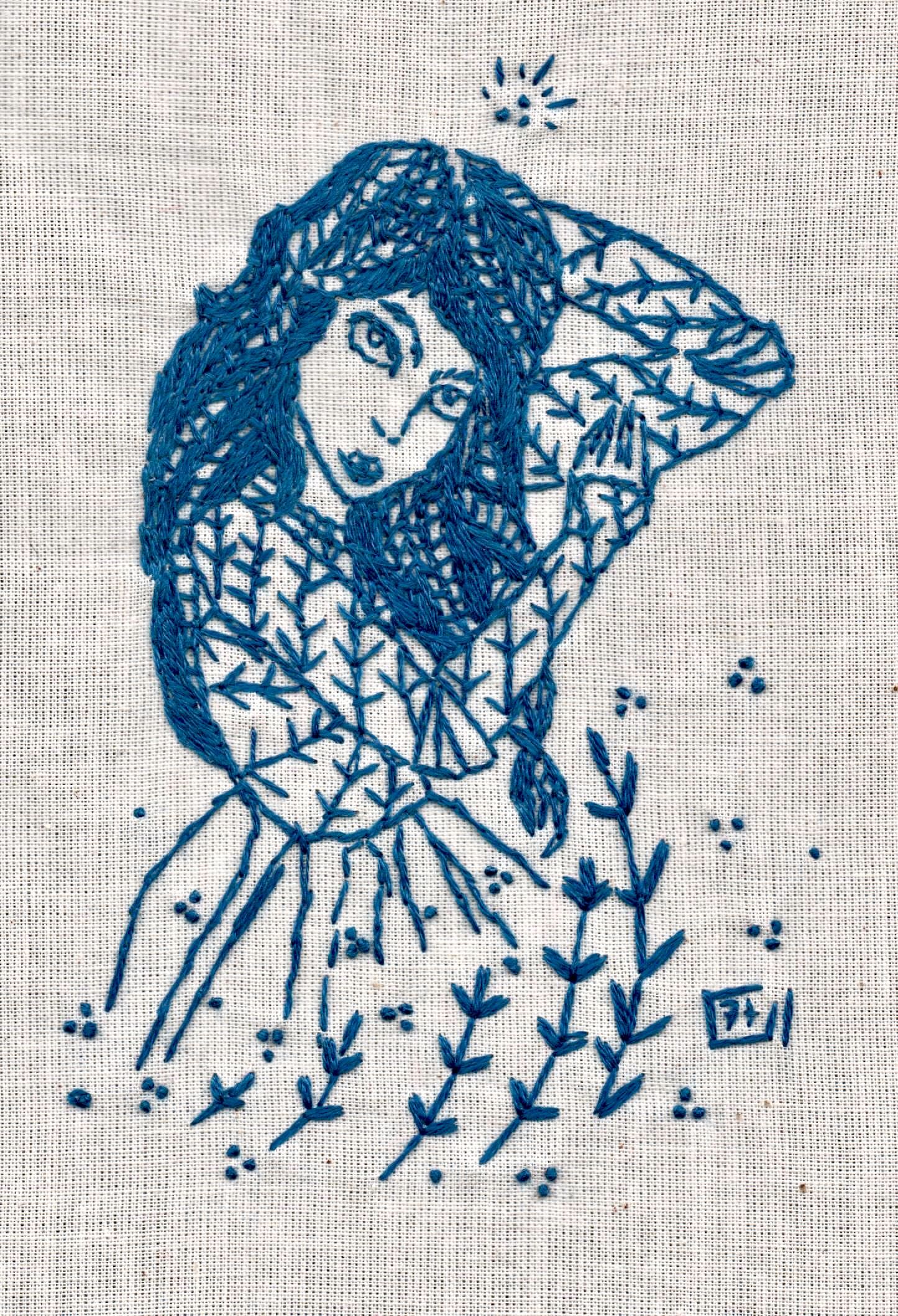 Beyond the practical and compact side of the technique. I wanted to develop my passion for the Pre-Raphaelite world while connecting to the shamanic world. Each embroidery brings me into an artistic trance where I explore the magic of femininity.