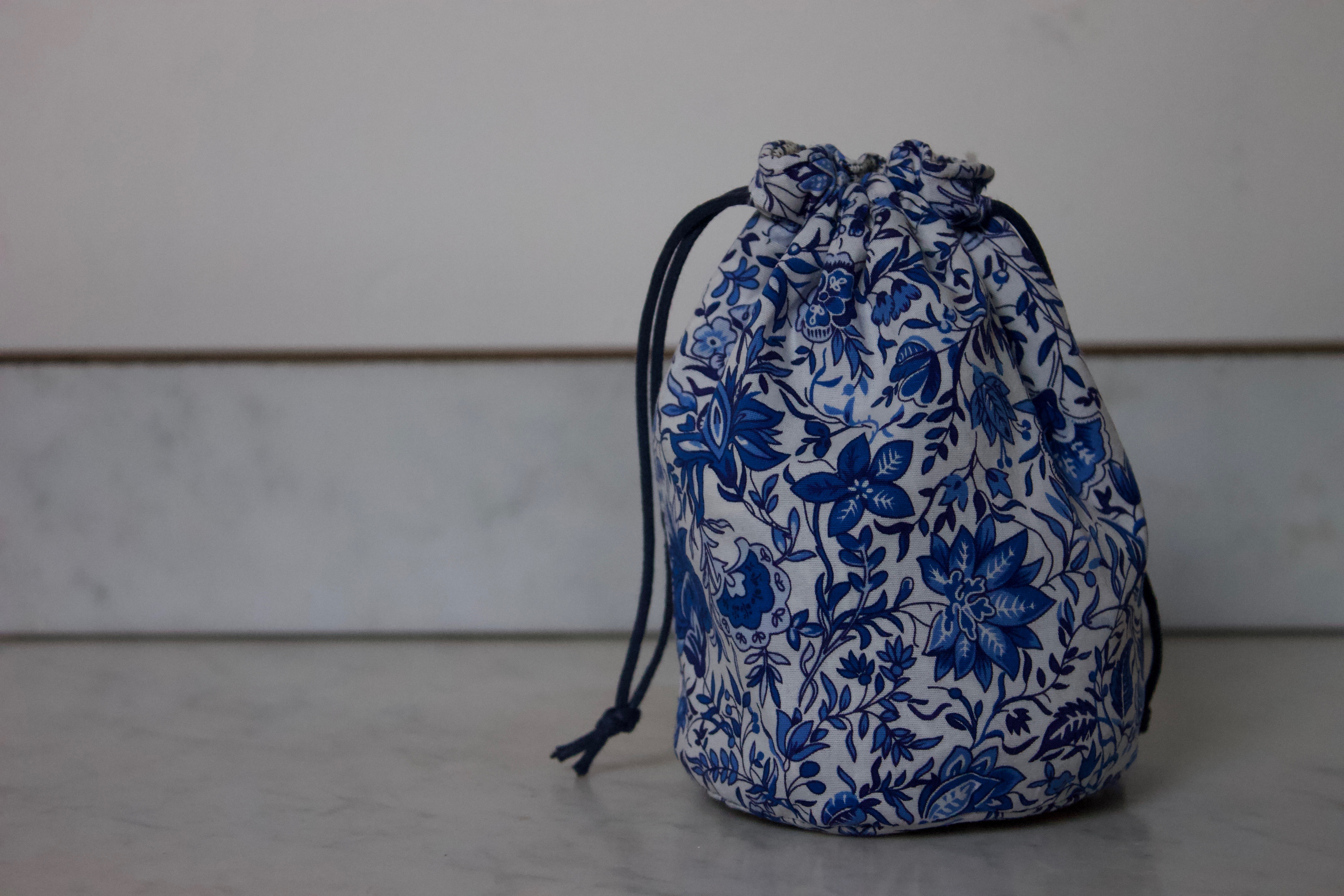 Serie of small nomadic purses. Easy cord lock, reversible, I choose my fabrics with care.